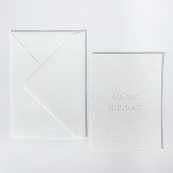 Each card is individually made by us in our studio. First, we create a design then printing plates are made and we use these to blind emboss our specially chosen luxury cardstock. Embossed means the design is raised and the card has a tactile luxury feel whilst maintaining a minimalist look.